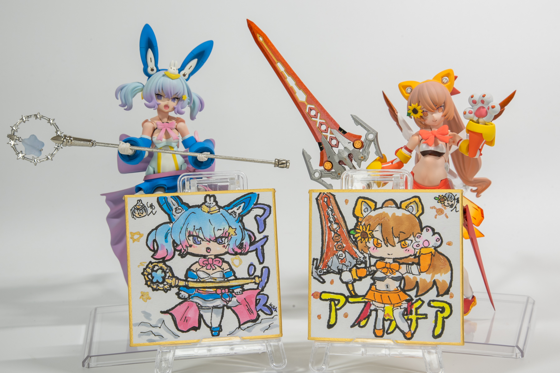 今回お隣の卓だったモジャさん、娘さんと親子で参加されていたのですが、娘さんからアイリスちゃんとアプリチアちゃんの色紙を描いてプレゼントして頂いたのです…!
