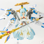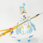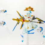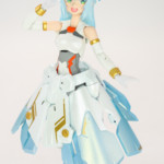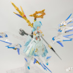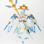 バレットナイツ騎士団の相方で、カモミールちゃんが重装歩兵なのに対して遠距離攻撃担当みたいな感じに。それならとこの頃発売されたオービットサークルを使って天使風に…といった感じでコンセプト決まっていきました。ドレスアーマーは使いたいたかったやつ。